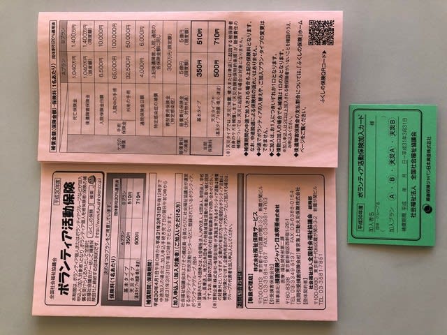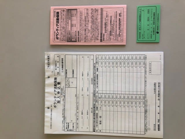 加入申込書控え、ボランティア活動保険のパンフレット(写真右上)ととともに、