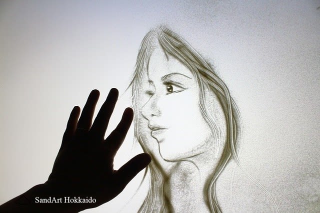 ガラスの下から投影された光と砂を使って次々と絵を描いていき、物語を展開するアートのことです