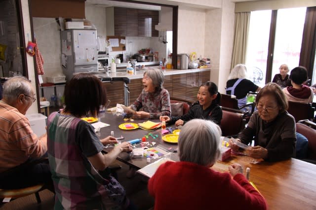 ▽高齢者ふれあい体験(白老高齢者複合施設グループホーム和花)…利用者の方との会話を楽しみながらお正月飾りづくり