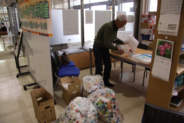 ▽仕分け作業体験(白老町ボランティアセンター)…ペットボトルキャップの仕分を行っていただきました