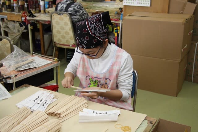 ▽軽作業体験(NPO法人四ツ葉)…割り箸の袋詰め作業を、一つ一つ丁寧に