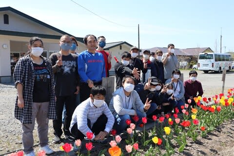 先日、外勤していた時に通りかかった”社会福祉法人ホープのフロンティア”さんの玄関前のチューリップが満開で、所員さん達が水やりをしている場面だったので、取材させて頂きました!