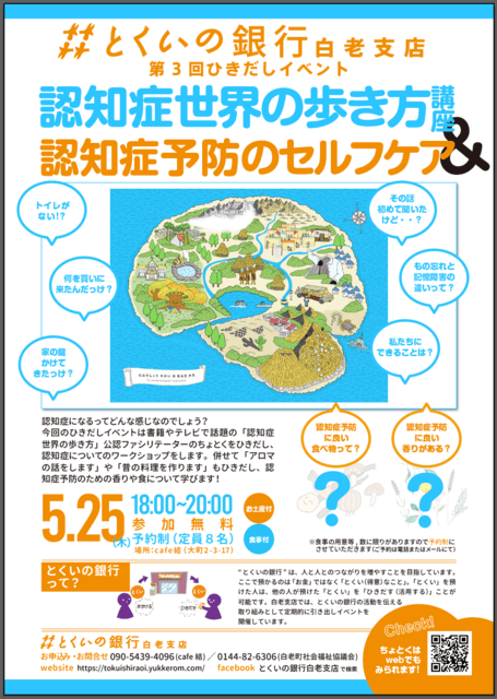 白老町社協と”とくいの銀行”がコラボして、『認知症世界の歩き方講座&認知症予防のセルフケア講座』を開催することが決定しました。