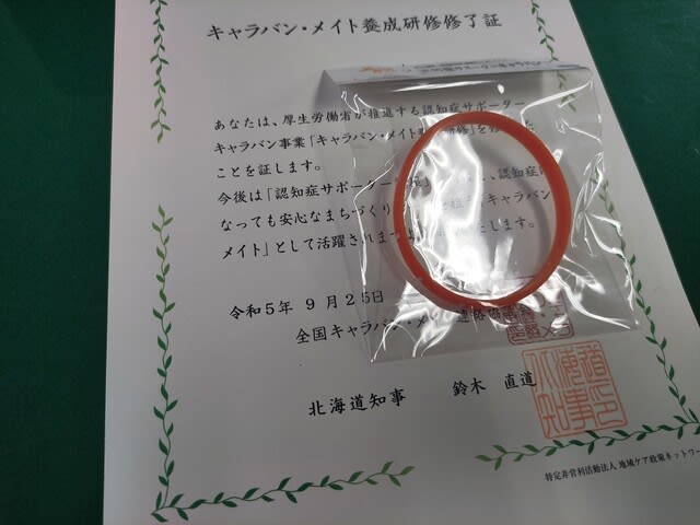 今回の研修を受講してキャラバン・メイトとなったので、白老町と協働で”認知症サポーター養成研修”を開催することがあります。