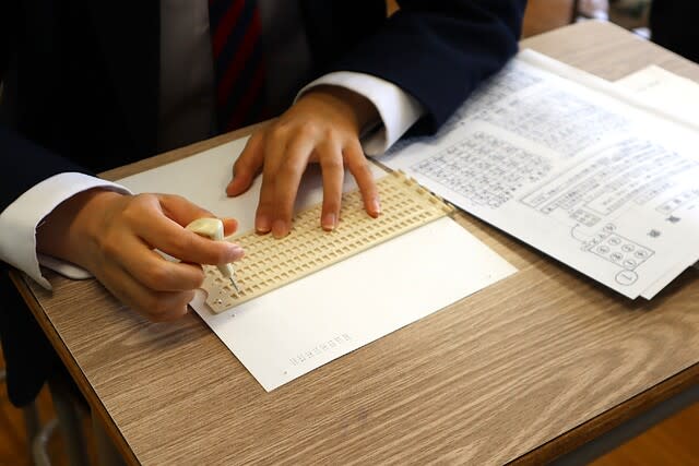 視覚障がいに対する理解についての説明から実際の点訳まで、受講した生徒は真剣に学んでいた様です。